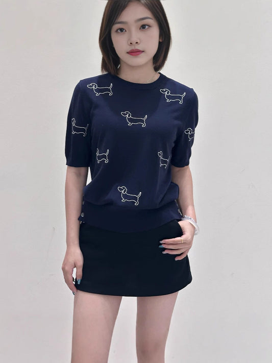 Women's Puppy Embroidered Short Sleeve