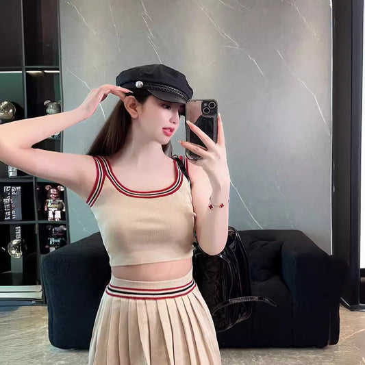 Women's Knitted sweater top + pleated skirt