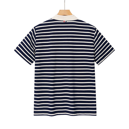 РаспродажаФутболка с полосатым лацканом 2025SS